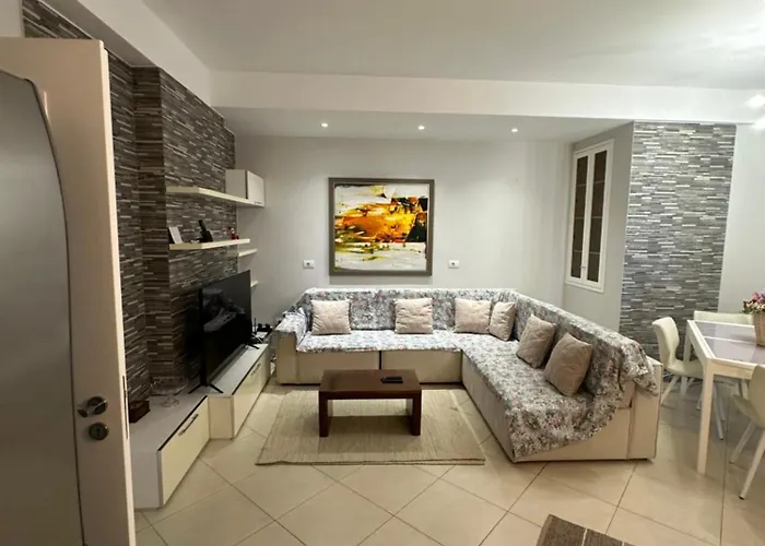 Situato a 5 minuti in macchina dal Monumento all'indipendenza, Melas Apartament Vlorë, di 90 m^2, comprende un balcone e una zona pranzo con vista sulle montagne.